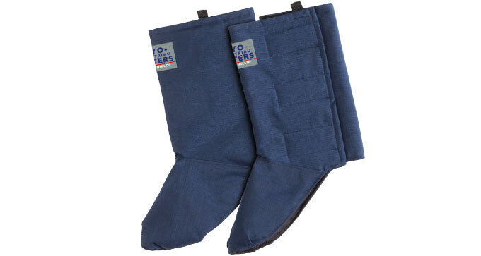 Wasserfesten, abriebfesten Gamaschen für Schutz vor kryogenen Spritzern im unteren Bein- und Fußbereich bei Arbeiten in tiefstkalten, industriellen Umgebungen.